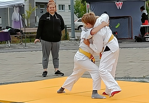 Kuvassa judonäytös. Mukana oli myös muita lajeja salibandystä keilailuun.