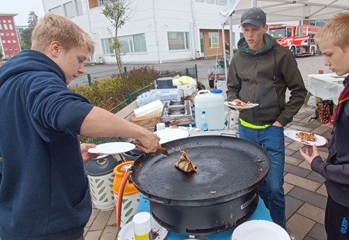 Lettuja, makkaraa, kahvia, pullaa, mehua. Nam nam.